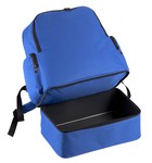 Polyester 600D, met dubbele PVC inductie. Verstevigde uitneembare bodem in PP met voetjes in plastic. Voorzak met rits om de personalisatie te vereenvoudigen. 2 zijzakken. Kaarthouder. Verstevigde bodem geleverd met de rugzak.